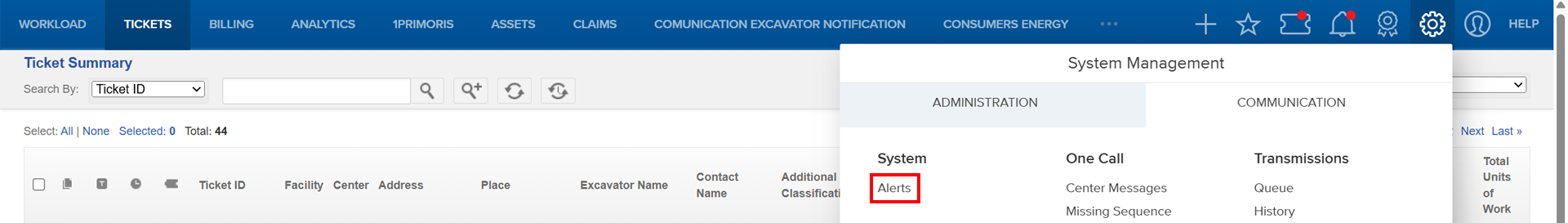 To access this feature: Utilisphere > System Management > Communication > System > Alerts