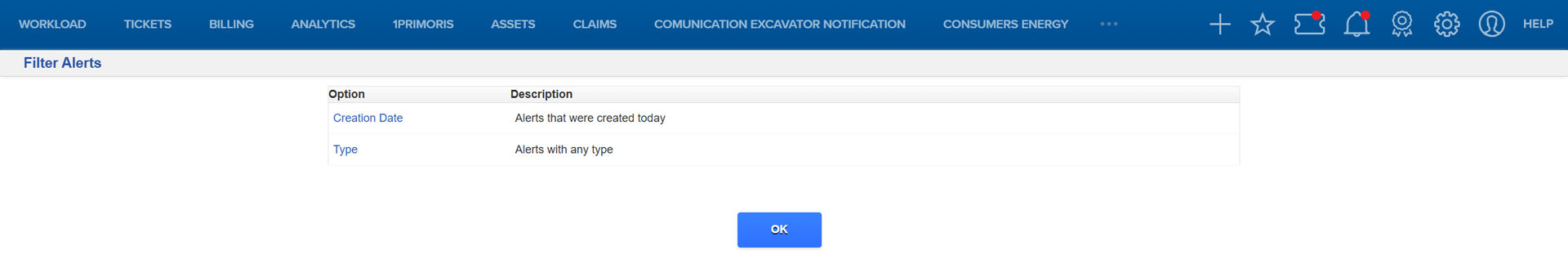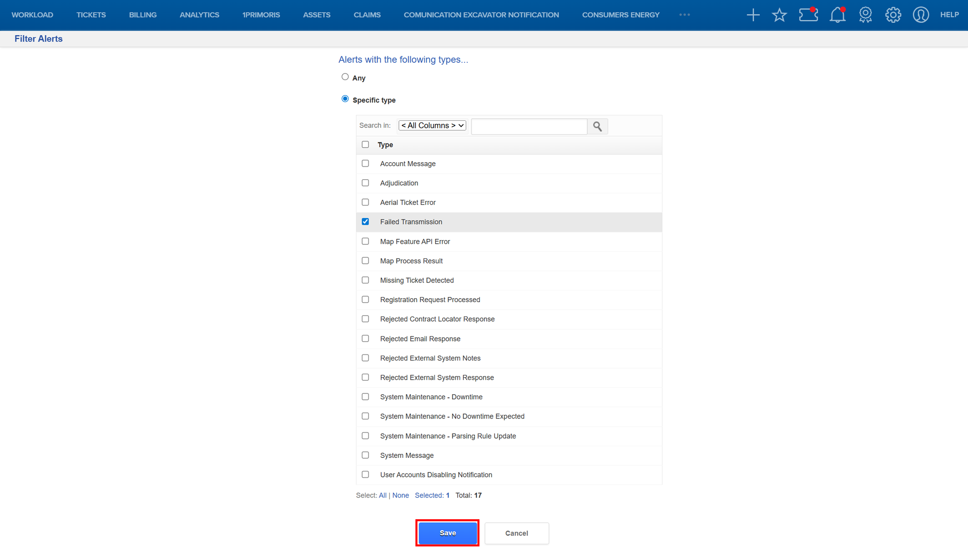 Filter Alerts by date or type and select Save. (Tip: Select “All” to see a full list.)