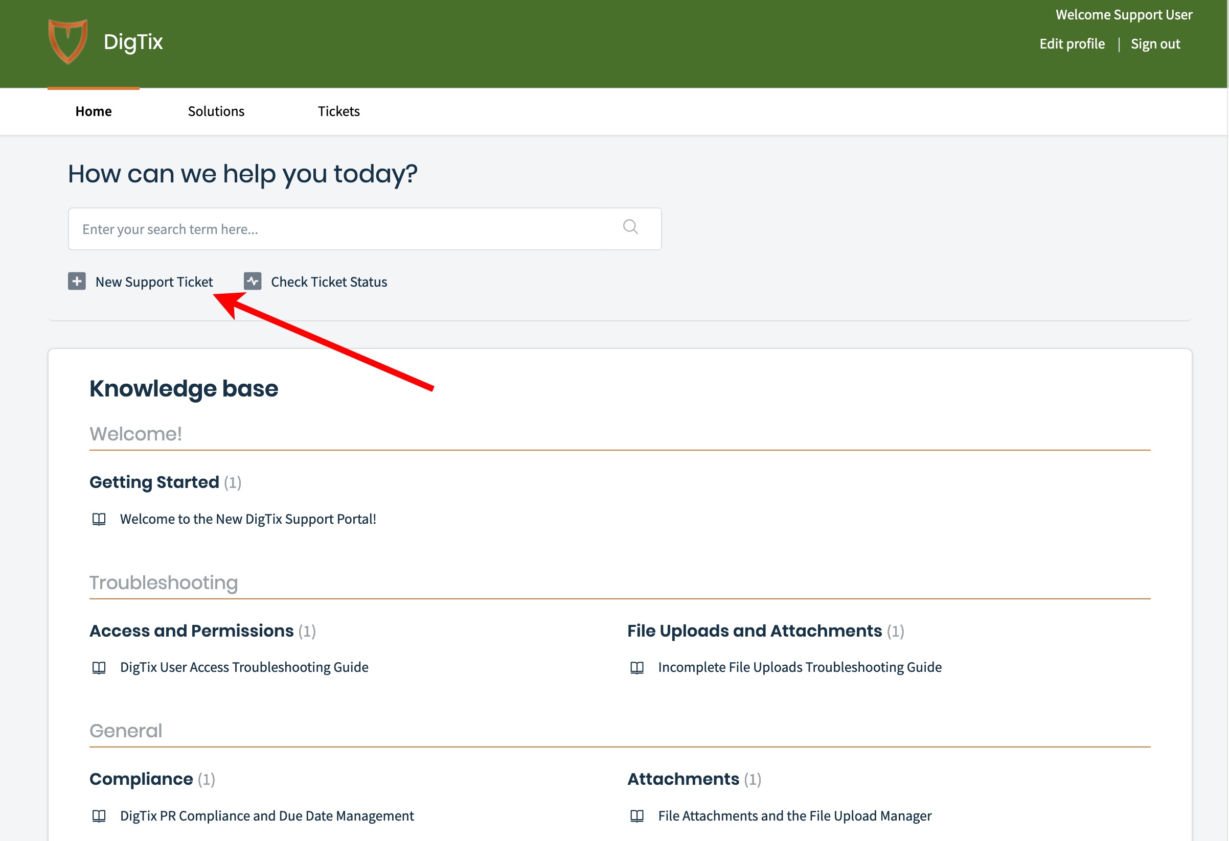 This document describes the steps that should be taken to submit a new DigTix support ticket.