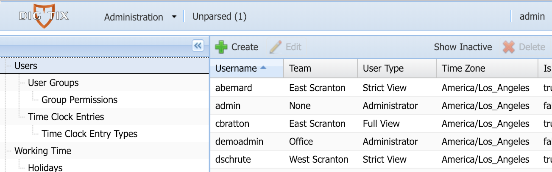 - If the user appears as inactive, they must be re-activated to access DigTix. Open the user’s profile by double clicking on the appropriate entry in the user list. On the user’s profile, check the “Active” checkbox field and click the “Submit” button.