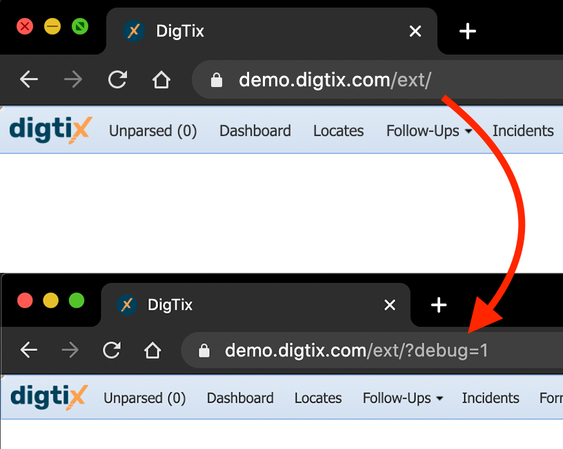 2. After logging in, click on the URL bar within your web browser and update the URL from https://companyname.digtix.com/ext/ to https://companyname.digtix.com/ext/?