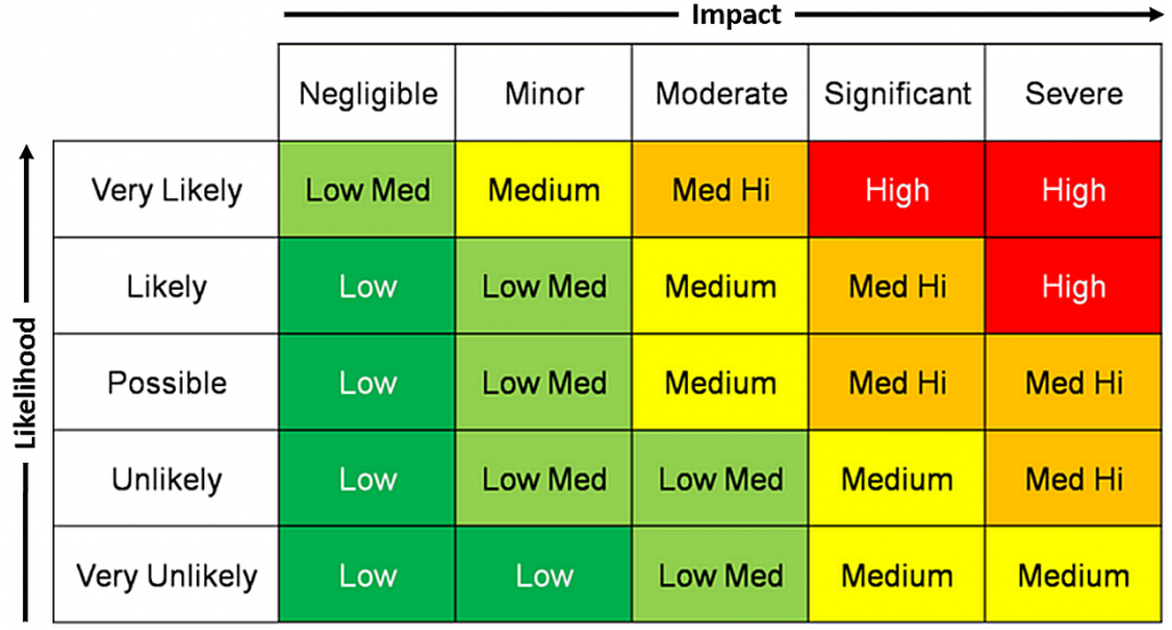 Risk can be considered as a combination of two quantifiable factors, as shown in the risk matrix (Figure 1) below: