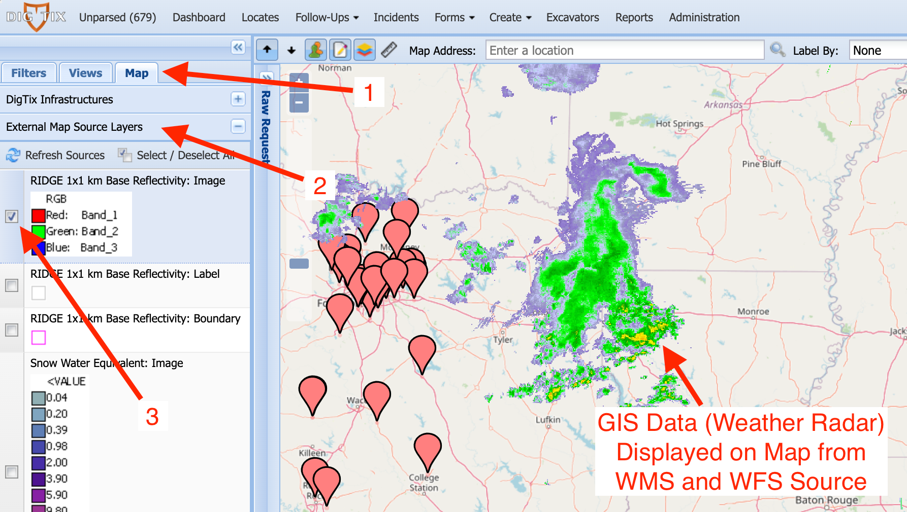 NOTE: Viewing GIS data via WMS is an integration available within DigTix Enterprise.