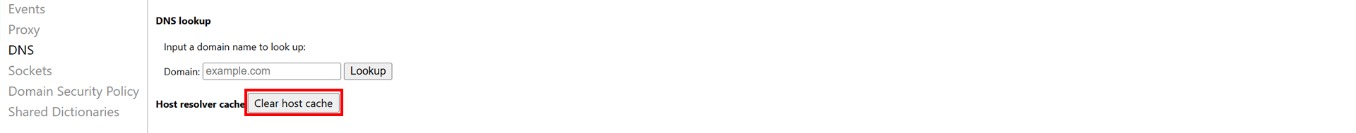 Click the Clear host cache button.