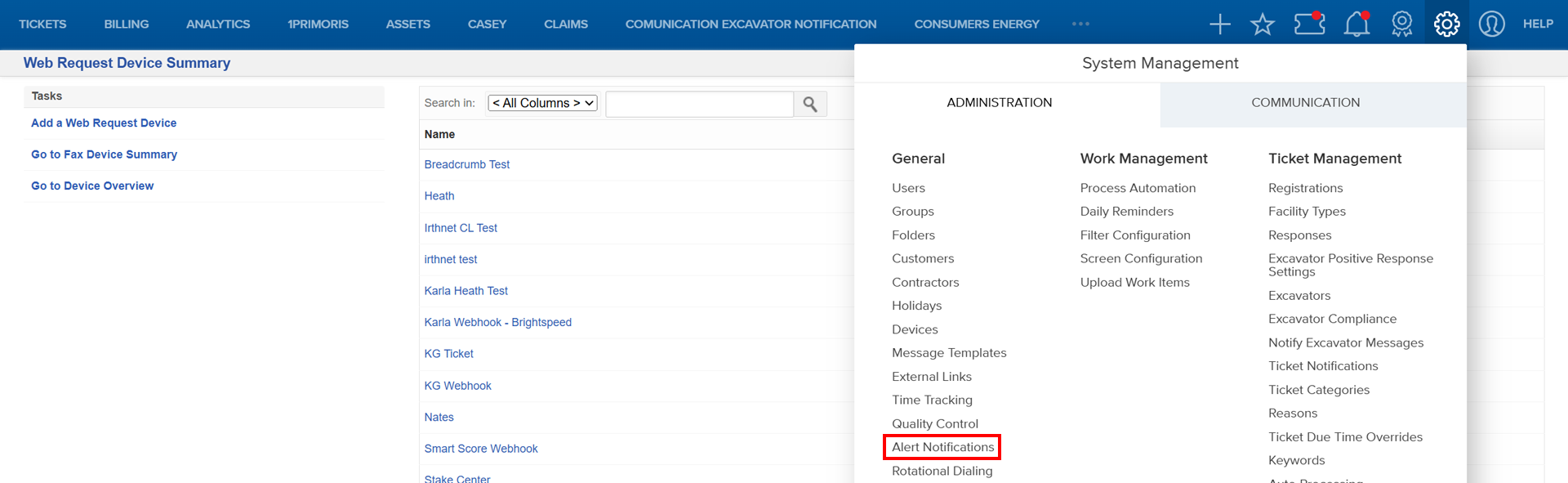To access this feature, go to: Utilisphere > System Management > Administration > General > Alert Notifrications