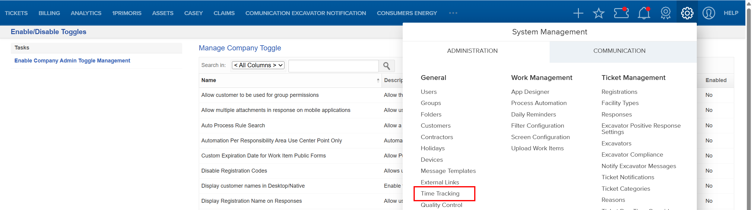 To configure Time Off Types or Absent Time, go to Utilisphere > System Management > Administration > General > Time Tracking