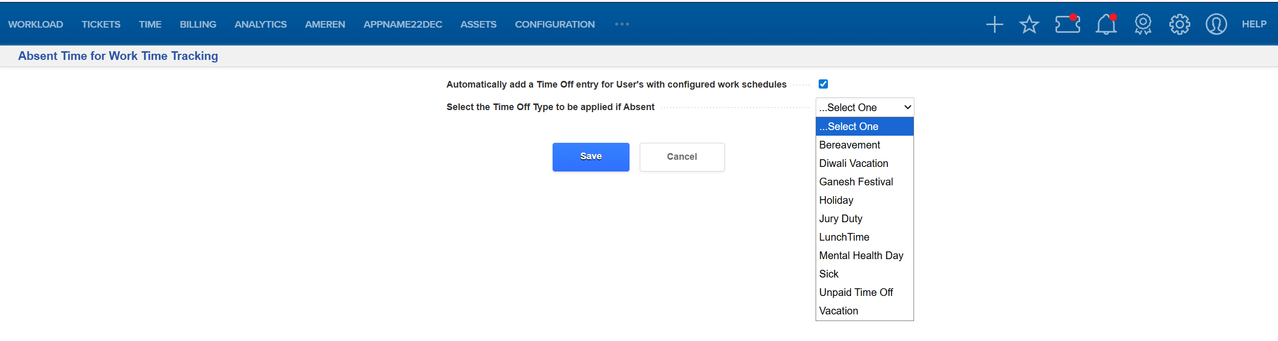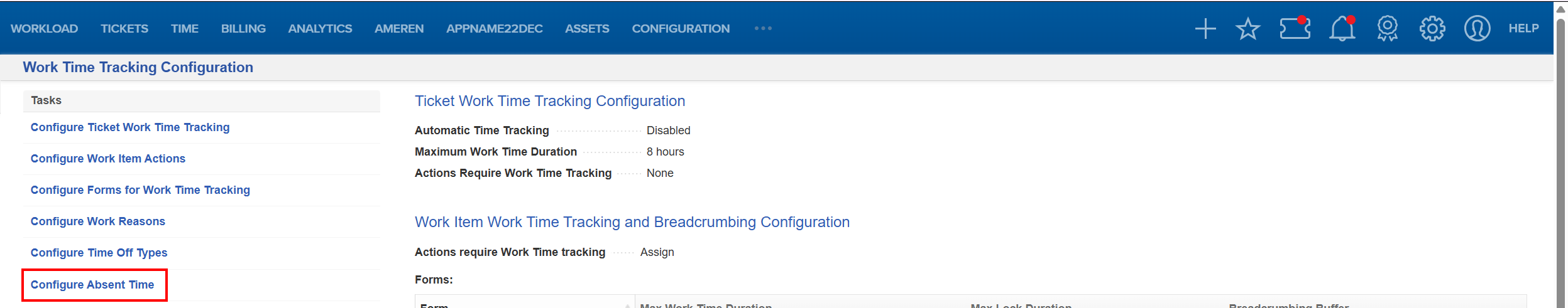 - Fill out the Absent Time for Work Time Tracking form and Save.