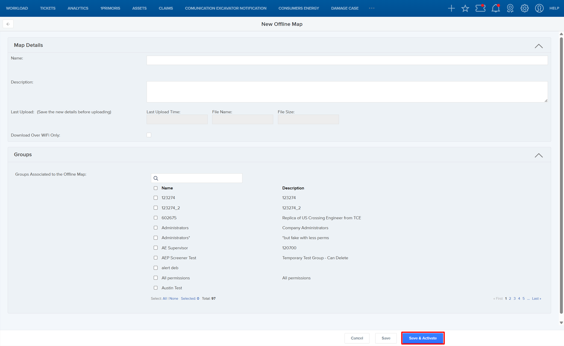 - Fill in the information for the new offline map and then select the Save & Activate button.