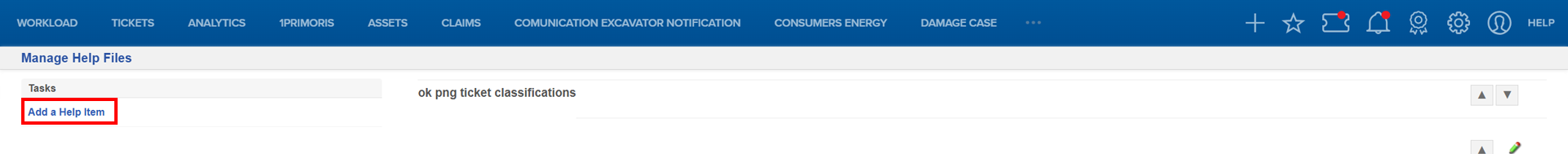 On the Manage Help Files page, click Add a Help Item in the left column.