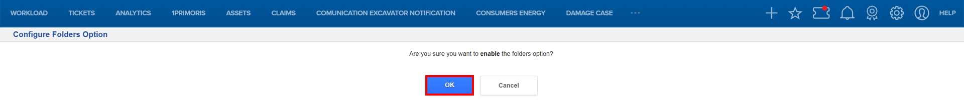 - Click the “here” link and select OK to enable Folders.