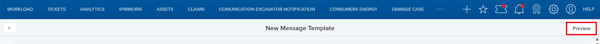 - Once you've navigated to the Message Template screen, click Create New Message Template on the upper right side of the screen.