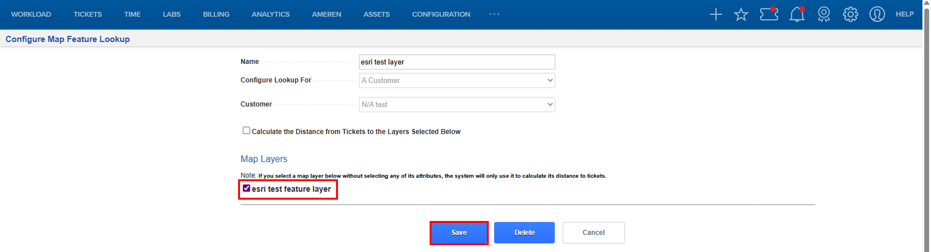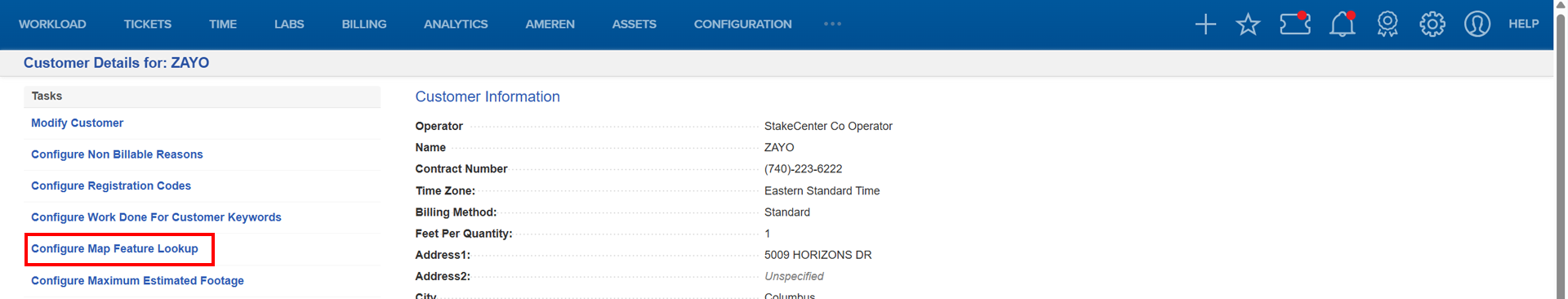 On the Customer Details screen, click Configure Map Feature Lookup.