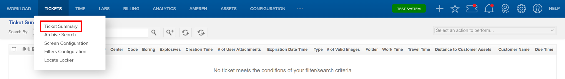 - Log in with a user who belongs to the updated group and go to the Ticket Summary.