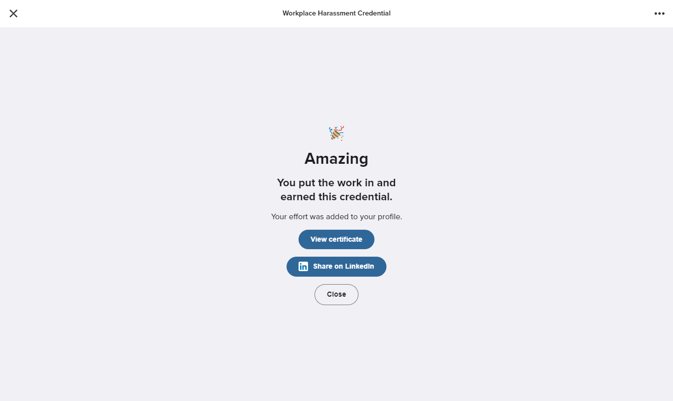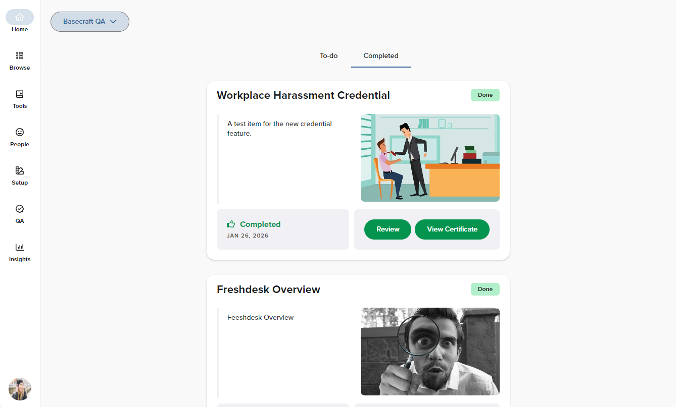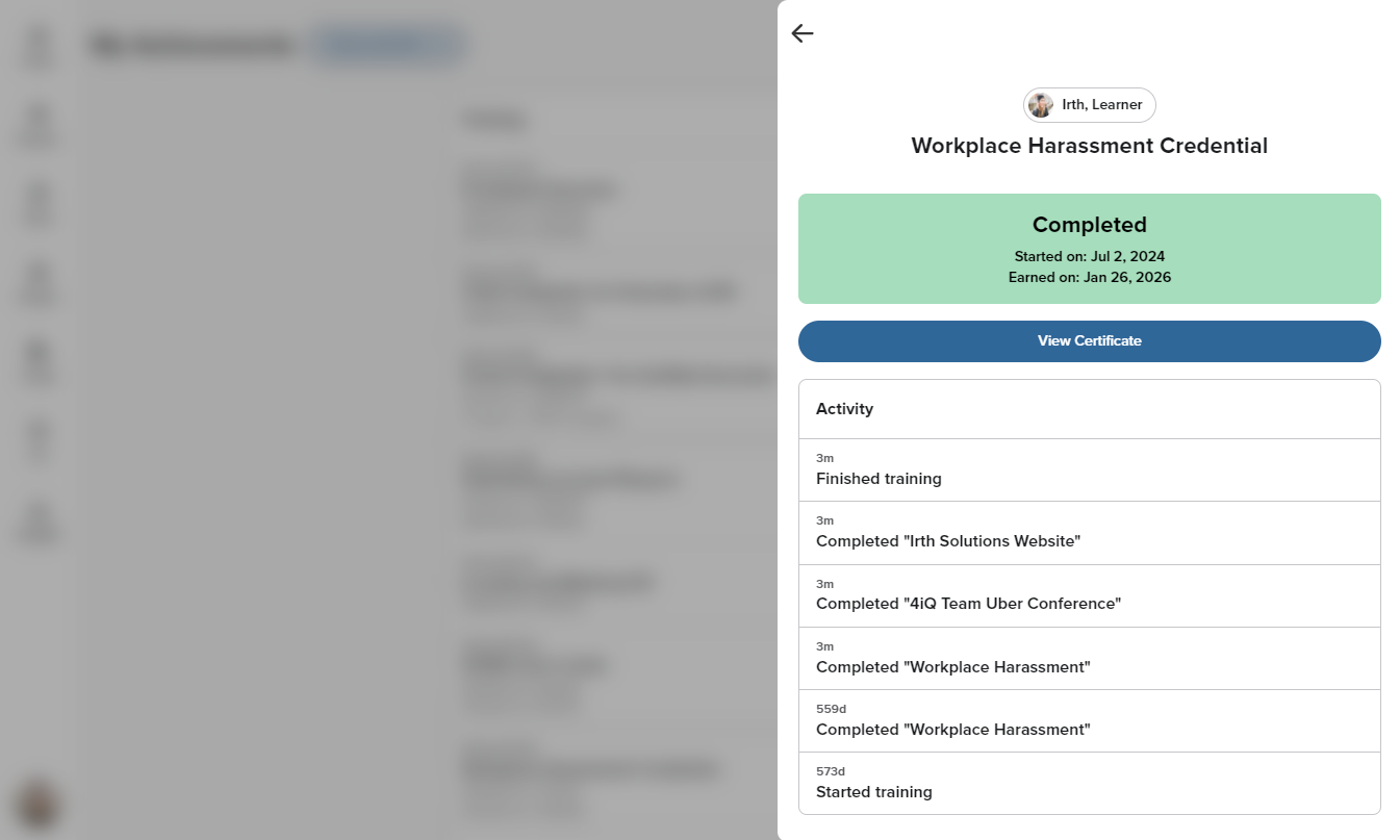 Learners will also see a “View Certificate” prompt immediately after completing a Credential training item.